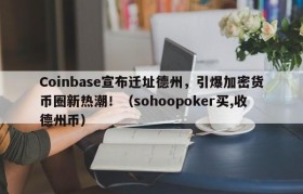 Coinbase宣布迁址德州,引爆加密货币圈新热潮!(sohoopoker买,收德州币)