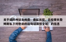 关于纽约州议员揭露:遭起诉后,总检察长詹姆斯私下对他说的这句话震惊全城!的信息