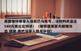 英国推特黑客入侵奥巴马账号,法院判其退还540万美元比特币!(推特遭黑客大规模攻击 拜登,奥巴马等人账号中招)