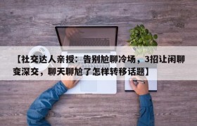 【社交达人亲授:告别尬聊冷场,3招让闲聊变深交,聊天聊尬了怎样转移话题】
