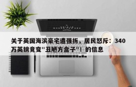 关于英国海滨豪宅遭强拆,居民怒斥:340万英镑竟变"丑陋方盒子"!的信息