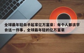 包含"全球最年轻白手起家亿万富豪:每个人都该学会这一件事"标签的文章