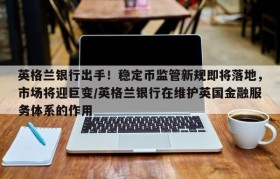 英格兰银行出手!稳定币监管新规即将落地,市场将迎巨变/英格兰银行在维护英国金融服务体系的作用