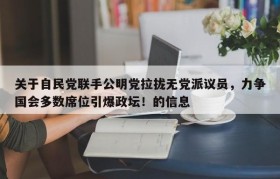 关于自民党联手公明党拉拢无党派议员,力争国会多数席位引爆政坛!的信息