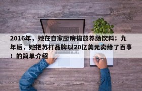 2016年,她在自家厨房捣鼓养肠饮料;九年后,她把苏打品牌以20亿美元卖给了百事!的简单介绍