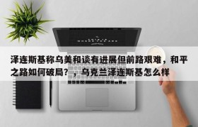 泽连斯基称乌美和谈有进展但前路艰难,和平之路如何破局?,乌克兰泽连斯基怎么样