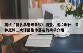 英格兰新名单引爆争议!福登、格拉利什、贝林厄姆三大球星集体落选的简单介绍