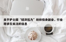 关于护士因“经济压力”纷纷投身副业,行业现状引关注的信息