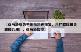 【亚马逊服务中断后迅速恢复,用户故障报告骤降九成!,亚马逊暂停】
