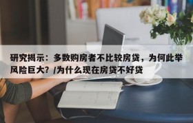 研究揭示:多数购房者不比较房贷,为何此举风险巨大?/为什么现在房贷不好贷