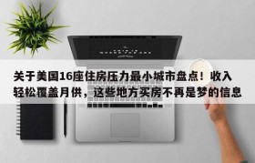 关于美国16座住房压力最小城市盘点!收入轻松覆盖月供,这些地方买房不再是梦的信息