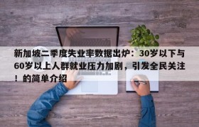 新加坡二季度失业率数据出炉:30岁以下与60岁以上人群就业压力加剧,引发全民关注!的简单介绍