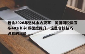 包含2026年退休金大变革!美国国税局宣布401(k)补缴额度提升,这些省钱技巧必看的词条