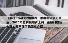 【重磅】SoFi业绩爆表!季度利润创纪录后,2025年盈利预期再上调,金融科技巨头野心藏不住了的简单介绍