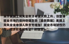 关于美国上周失业救济申请人数上升,但整体就业市场仍保持稳健态势【最新数据】美国上周失业金申领人数意外增加!就业市场韧性仍存,经济软着陆有望?的信息