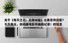 关于《鬼灭之刃:无限城篇》北美首周狂揽7千万美元,创动画电影开画新纪录!的信息