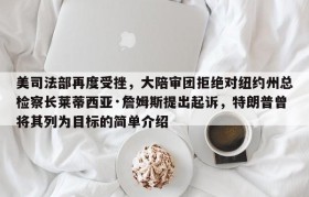 美司法部再度受挫,大陪审团拒绝对纽约州总检察长莱蒂西亚·詹姆斯提出起诉,特朗普曾将其列为目标的简单介绍