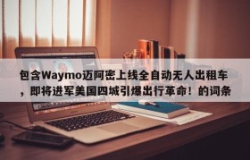 包含Waymo迈阿密上线全自动无人出租车,即将进军美国四城引爆出行革命!的词条