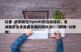 拉里·萨默斯在OpenAI的这段经历,竟成他职业生涯最关键的转折点!(萨姆·拉默斯)