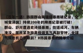 【百年一遇!韩国群山海啸级暴雨破纪录,全城变泽国】持续200年的降雨纪录被打破!群山、舒川遭遇史诗级暴雨,街道成河,车辆淹没,居民紧急撤离极端天气再敲警钟,全球气候危机已到眼前?#韩国暴雨的简单介绍