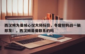 西汉姆为曼城心仪大将标价,冬窗抢购战一触即发!,西汉姆是曼联系的吗