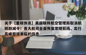 关于【重磅快讯】美国联邦航空管理局取消航班削减令!各大航司全面恢复常规航线,出行高峰即将来临的信息