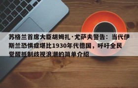 苏格兰首席大臣胡姆扎·尤萨夫警告:当代伊斯兰恐惧症堪比1930年代德国,呼吁全民觉醒抵制歧视浪潮的简单介绍