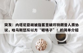 突发:内塔尼亚胡被指蓄意破坏特朗普人质协议,哈马斯怒斥以方“砸场子”!的简单介绍