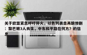 关于欧盟紧急呼吁停火,以色列袭击再酿惨剧:黎巴嫩3人丧生,中东和平路在何方?的信息