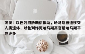 突发!以色列威胁断供援助,哈马斯被迫移交人质遗体,以色列炸死哈马斯高官后哈马斯平静许多