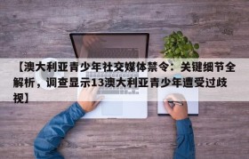 【澳大利亚青少年社交媒体禁令:关键细节全解析,调查显示13澳大利亚青少年遭受过歧视】