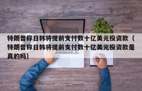 特朗普称日韩将提前支付数十亿美元投资款(特朗普称日韩将提前支付数十亿美元投资款是真的吗)