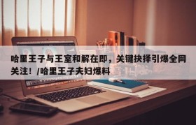 哈里王子撕裂:面临梅根和戴安娜之间的“艰难”选取 1、哈里王子确实面临在母亲戴安娜王妃与妻子梅根·马...