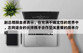 副总理颜金勇表示,在充满不确定性的世界中,志同道合的伙伴携手合作至关重要的简单介绍
