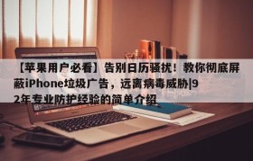 【苹果用户必看】告别日历骚扰!教你彻底屏蔽iPhone垃圾广告,远离病毒威胁|92年专业防护经验的简单介绍