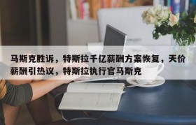 马斯克胜诉,特斯拉千亿薪酬方案恢复,天价薪酬引热议,特斯拉执行官马斯克