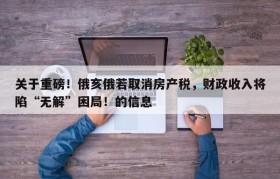 关于重磅!俄亥俄若取消房产税,财政收入将陷“无解”困局!的信息