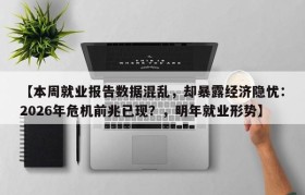 【本周就业报告数据混乱,却暴露经济隐忧:2026年危机前兆已现?,明年就业形势】