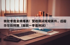微软季度业绩爆表!营收利润双双飙升,远超华尔街预期(微软一季度利润)