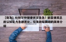 【突发】杜特尔特健康状况告急!前菲律宾总统认知能力急剧恶化,引发政坛震动的简单介绍
