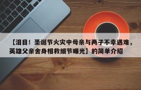 【泪目!圣诞节火灾中母亲与两子不幸遇难,英雄父亲舍身相救细节曝光】的简单介绍