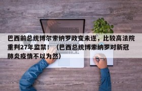 巴西前总统博尔索纳罗政变未遂,比较高法院重判27年监禁!(巴西总统博索纳罗对新冠肺炎疫情不以为然)