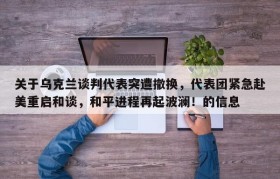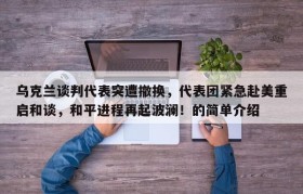 关于乌克兰谈判代表突遭撤换,代表团紧急赴美重启和谈,和平进程再起波澜!的信息