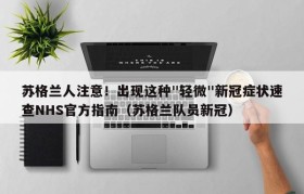 苏格兰人注意!出现这种"轻微"新冠症状速查NHS官方指南(苏格兰队员新冠)