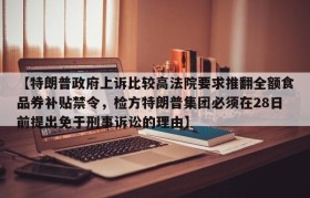 【特朗普政府上诉比较高法院要求推翻全额食品券补贴禁令,检方特朗普集团必须在28日前提出免于刑事诉讼的理由】