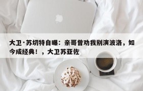 大卫·苏切特自曝:亲哥曾劝我别演波洛,如今成经典!,大卫苏亚佐
