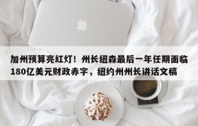 加州预算亮红灯!州长纽森最后一年任期面临180亿美元财政赤字,纽约州州长讲话文稿