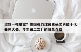 谁想一夜暴富?美国强力球彩票头奖再破十亿美元大关,今年第二次!的简单介绍