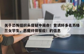 关于恐怖组织头目狱中毙命!曾诱奸多名苏格兰女学生,恶魔终得报应!的信息