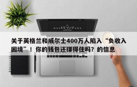 关于英格兰和威尔士400万人陷入“负收入困境”!你的钱包还撑得住吗?的信息